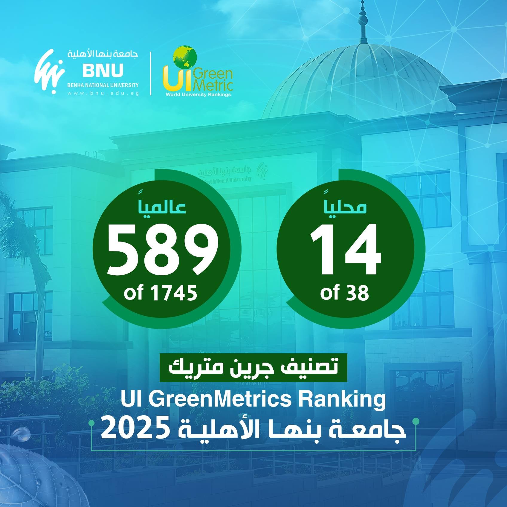 أعلن الدكتور جمال السعيد رئيس مجلس الأمناء أن جامعة بنها الأهلية حققت إنجازاً جديداً بحصولها على المركز 589 عالميا، وفق تصنيف UI Green Metrics للجامعات الصديقة للبيئة لعام 2025، وجاءت الجامعة في المرتبة 14 محلياً و17 أفريقيا بين أفضل 1745 جامعة تم تصنيفها هذا العام.