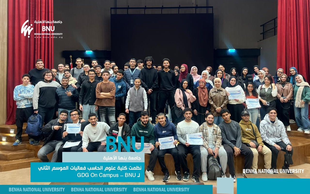 تحت رعاية الدكتور تامر سمير رئيس جامعة بنها الأهلية، نظمت كلية علوم الحاسب فعاليات الموسم الثاني لـ GDG On Campus – BNU في خطوة تعكس حجم التطور الذي يشهده المجتمع التقني الطلابي داخل الجامعة، ومدى وعي طلابها بمتطلبات سوق العمل الرقمي.